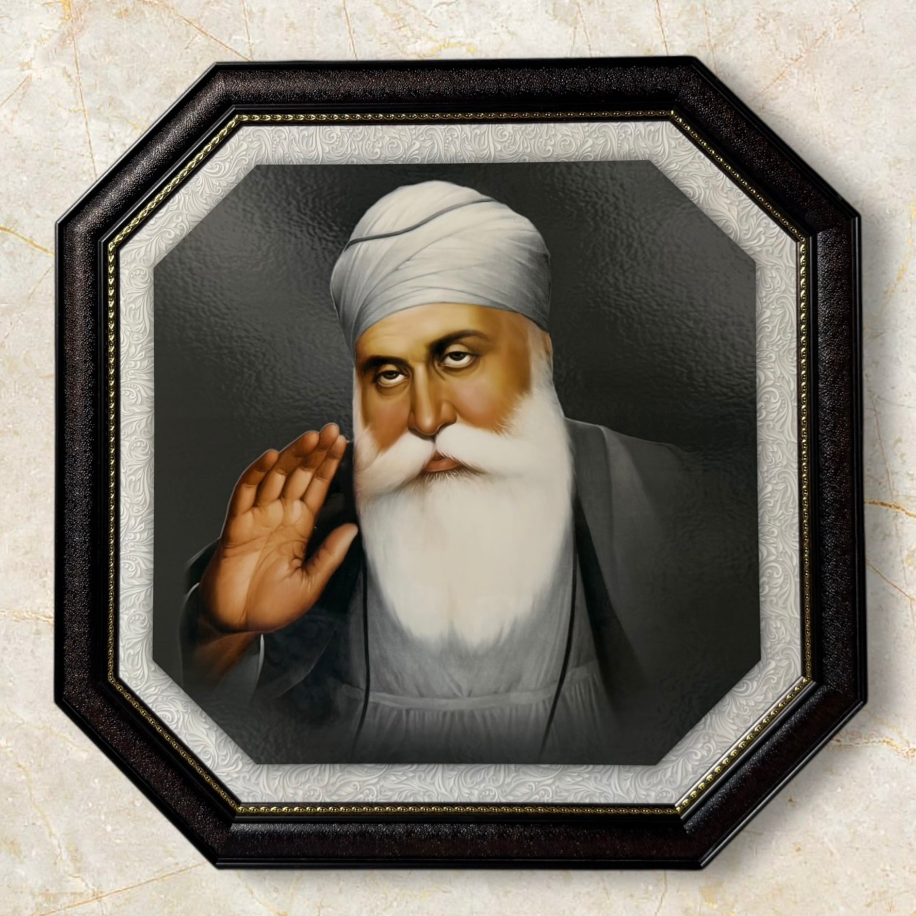 The divine presence of Guru Nanak Dev Ji with this beautifully crafted portrait, perfect for any home, office, or spiritual space.