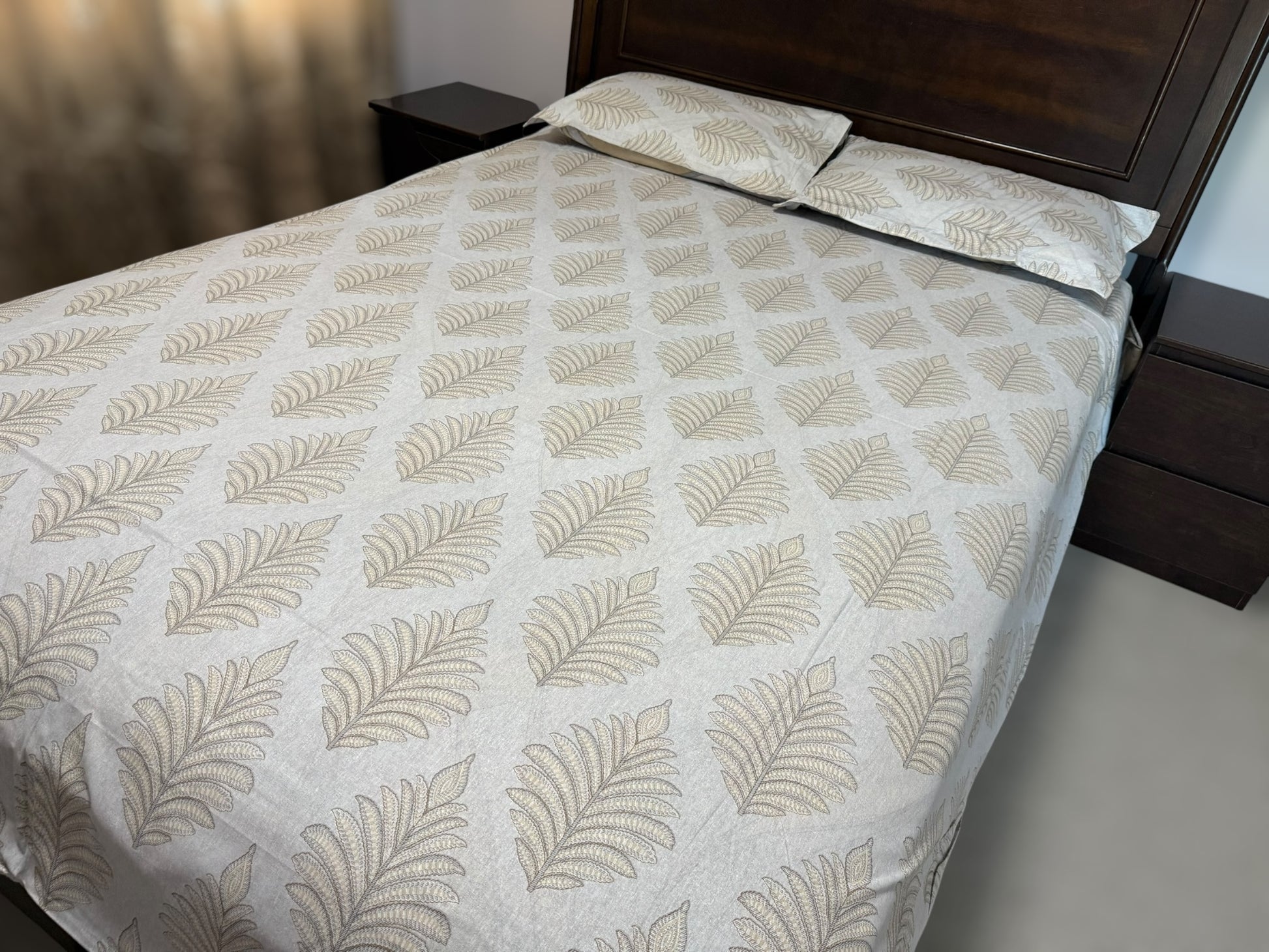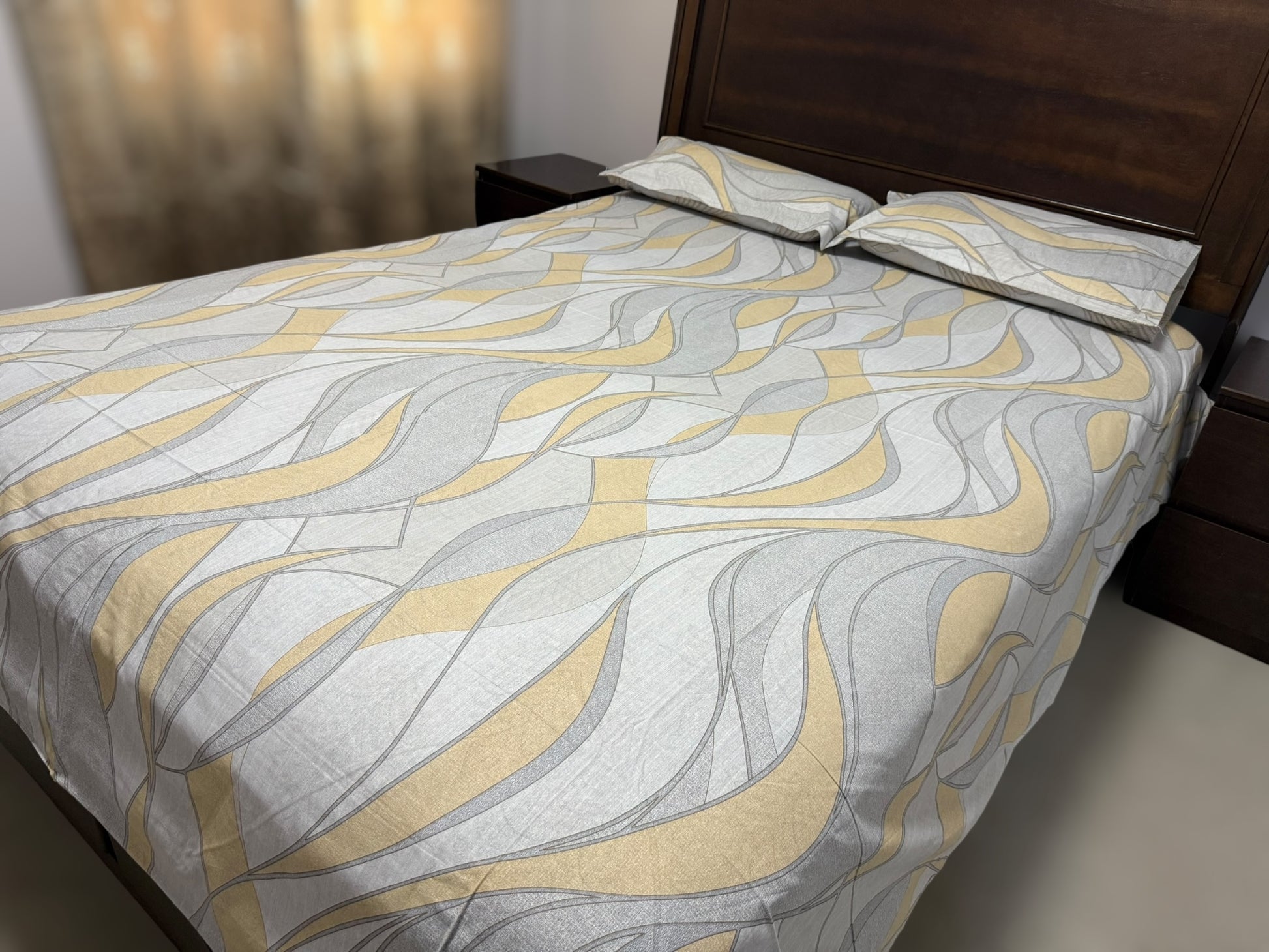 Upgrade your bedroom with this stylish reversible queen-size bedsheet. One side features a bold, modern print, while the other showcases a subtle, elegant pattern—perfect for switching up your décor whenever you like.