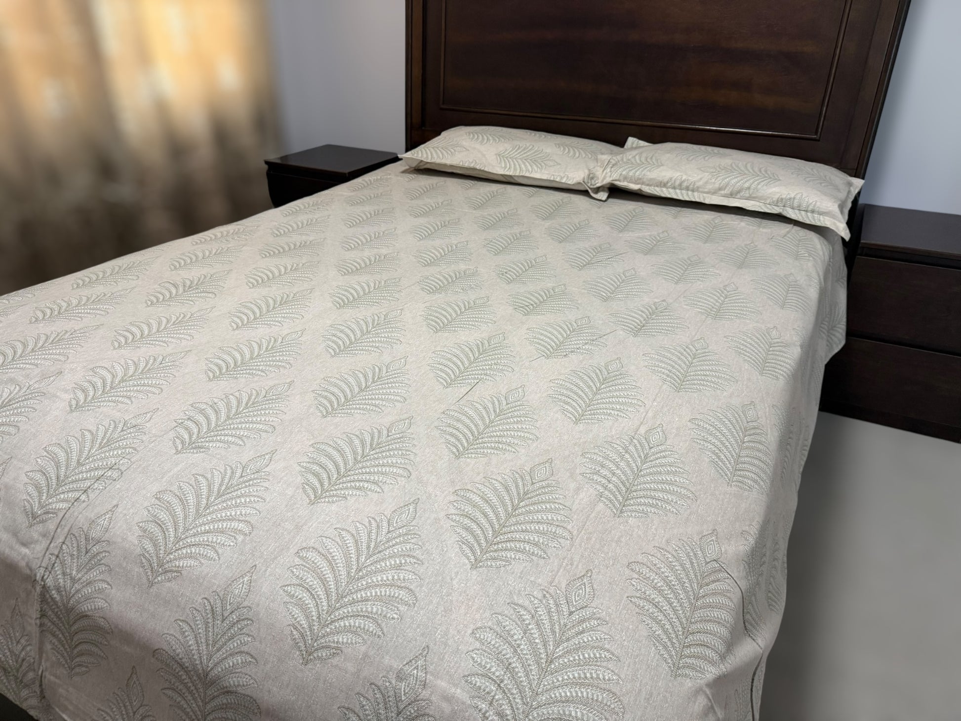 Upgrade your bedroom with this stylish reversible queen-size bedsheet. One side features a bold, modern print, while the other showcases a subtle, elegant pattern—perfect for switching up your décor whenever you like.