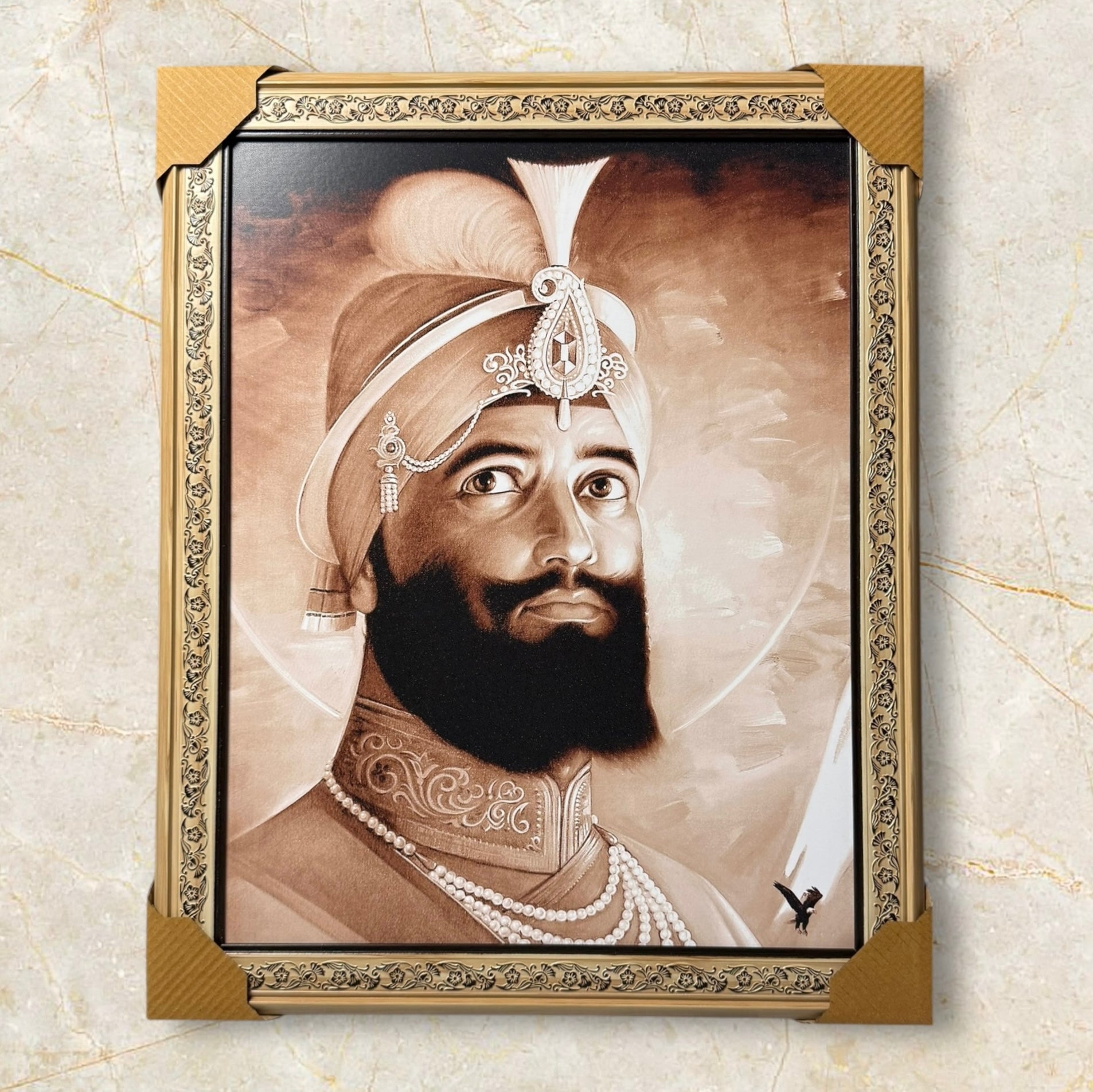 The divine presence of Guru Gobind Singh Ji with this beautifully crafted portrait, perfect for any home, office, or spiritual space.