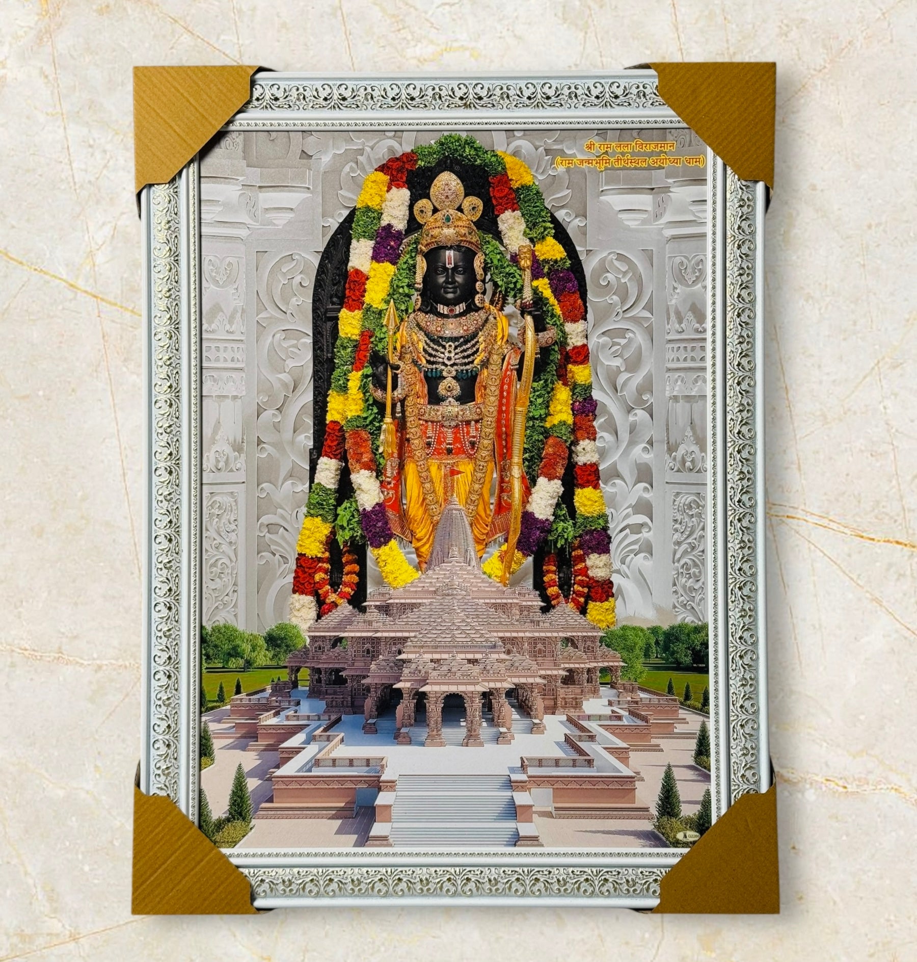 Experience the divine presence of Ram Mandir with this beautifully crafted portrait, perfect for any home, office, or spiritual space.