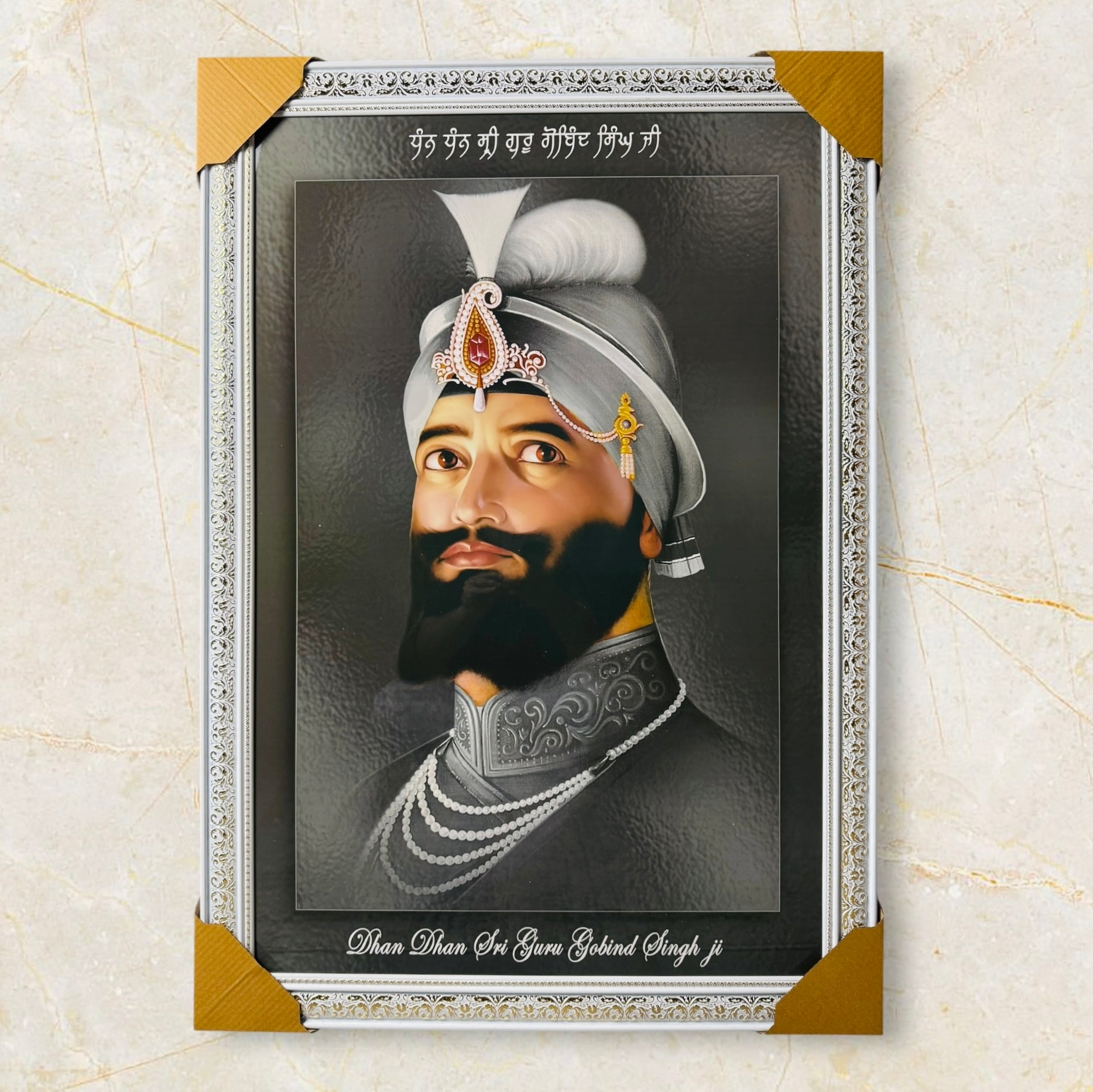 The divine presence of Guru Gobind Singh Ji with this beautifully crafted portrait, perfect for any home, office, or spiritual space.